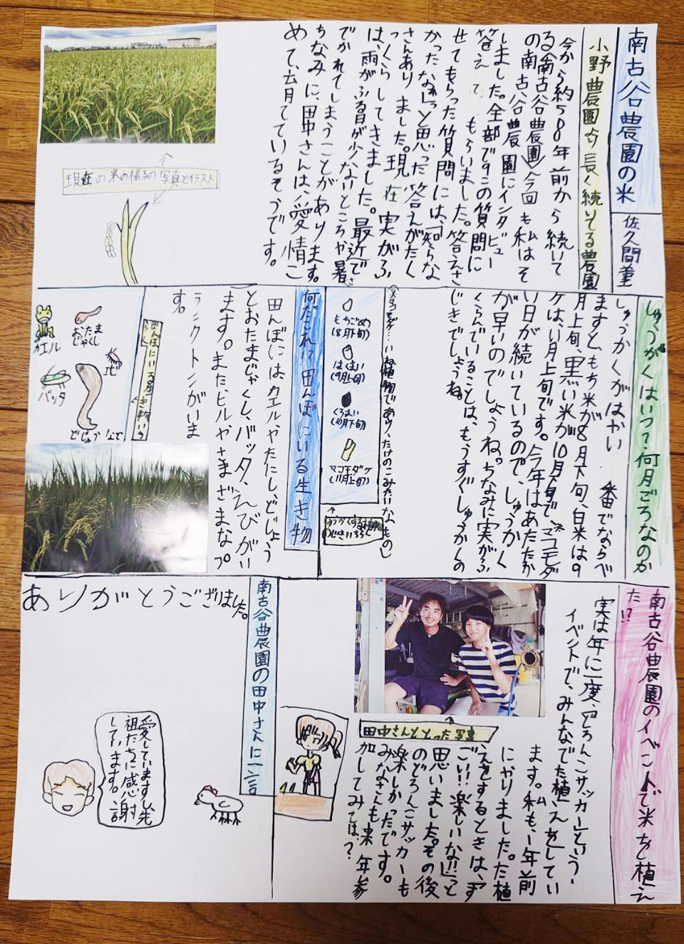 この夏休み、地元の小学生が自由研究の課題として「小江戸 南古谷農園」を取材し、手作りの新聞にまとめてくれました。